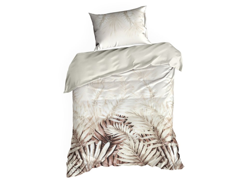 Ložní povlečení NESSA v bílé barvě s decentním přírodním vzorem tropických listů přináší do vaší ložnice svěžest a harmonii.
