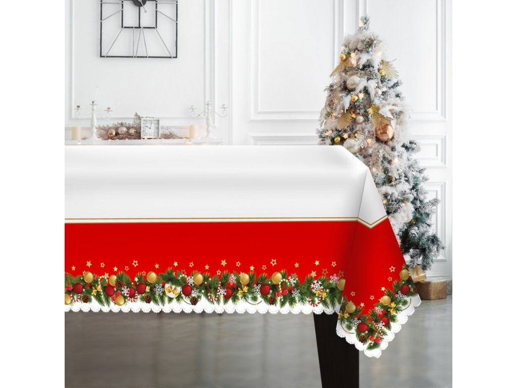 Červený Vánoční ubrus Merry Christmas s potiskem D785