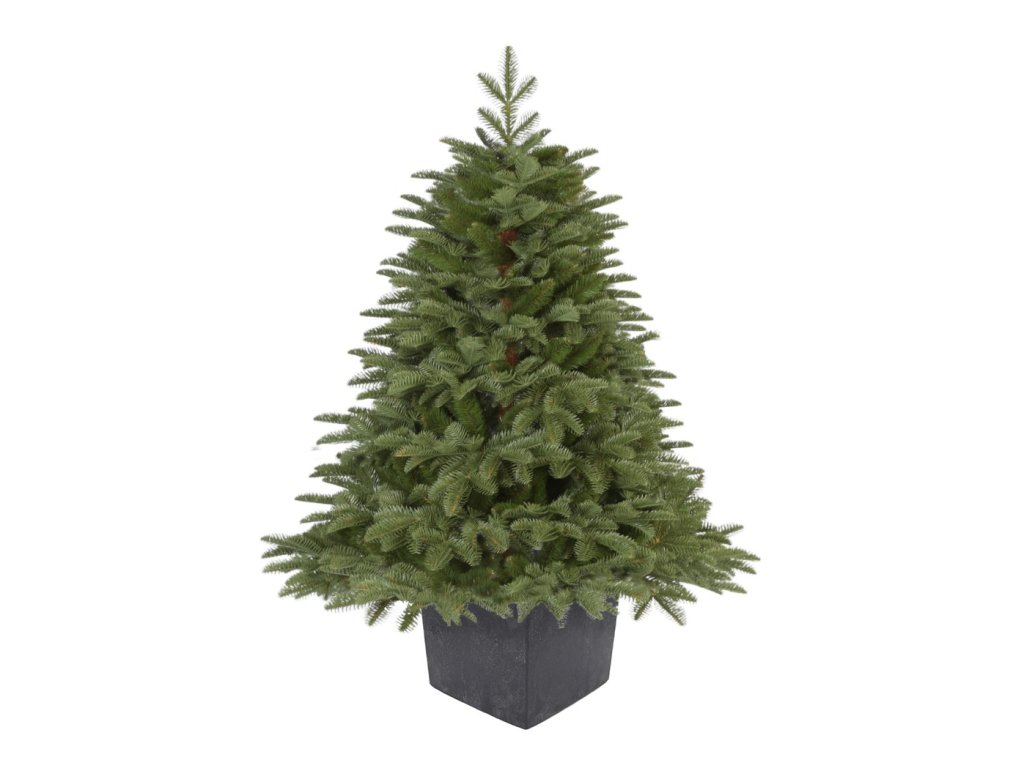 Moderní čtvercový květináč ve stylové barvě imitace tmavě šedého betonu je dokonalým doplňkem pro váš vánoční stromek.