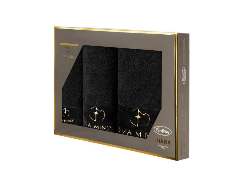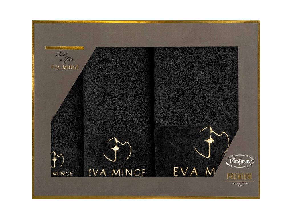 Sada tří ručníků z kolekce EVA MINGE, zabalená v elegantní kartónové krabici je ideální volbou pro originální a zároveň praktický dárek.