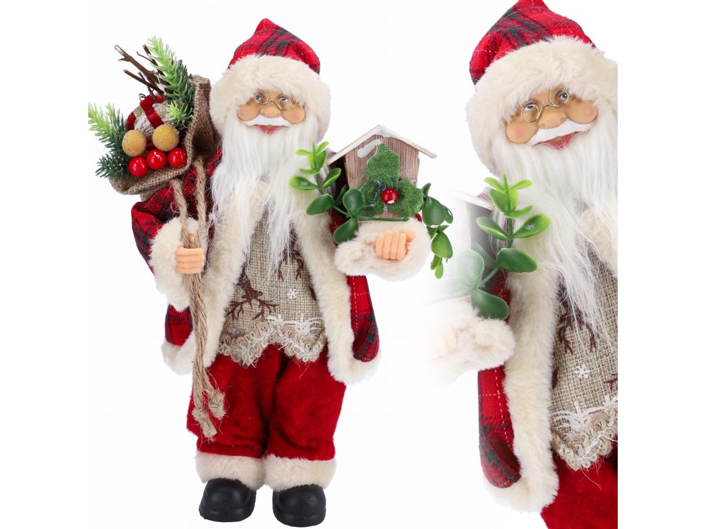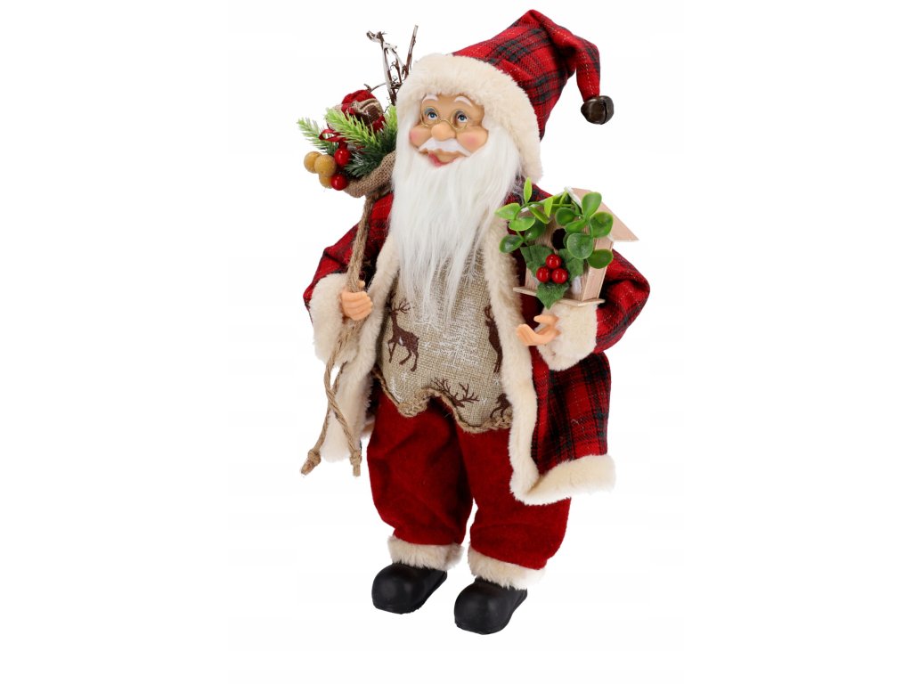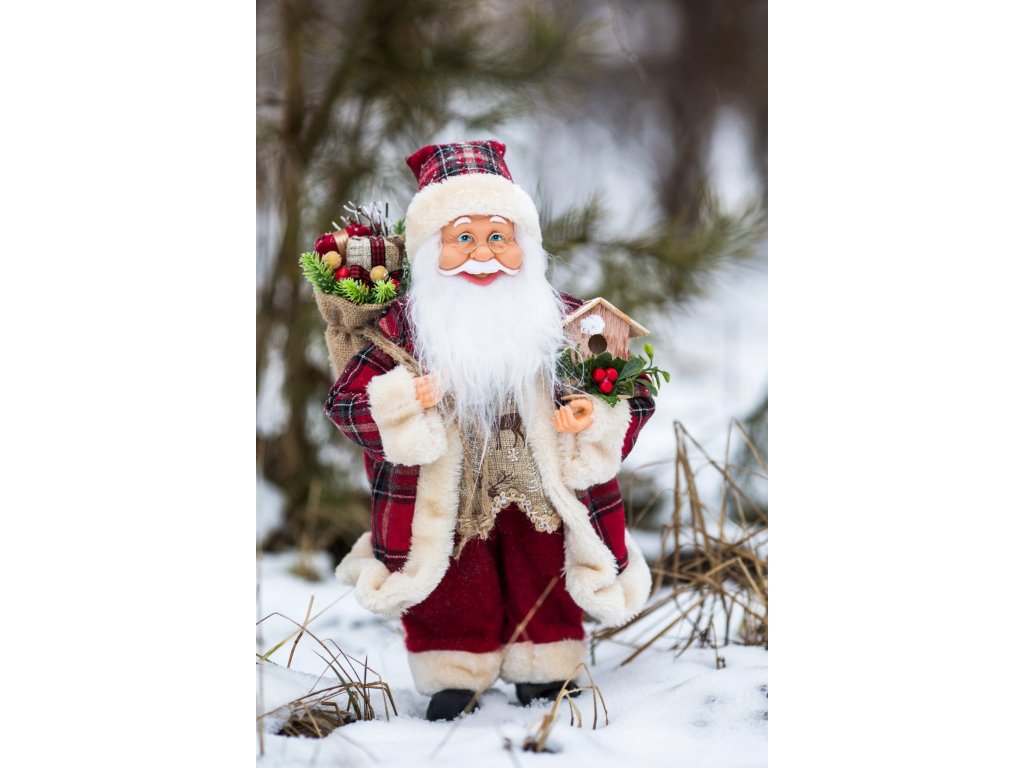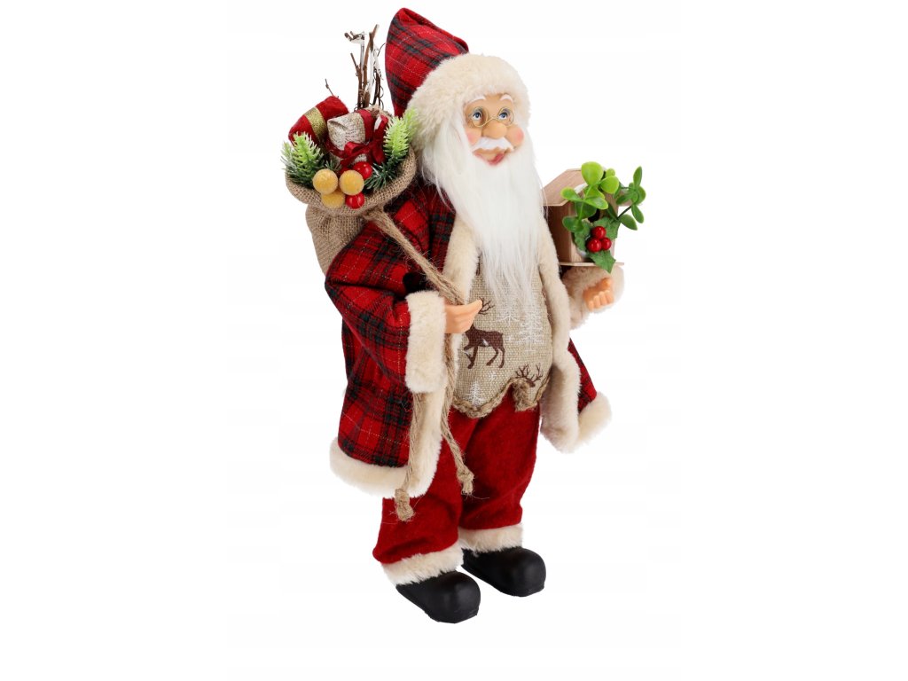 Vánoční figurka dědeček Mikuláš je vyroben z plastu, na hlavě má čepici lemovanou kožíškem zakončenou bambulí.