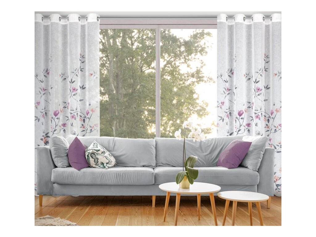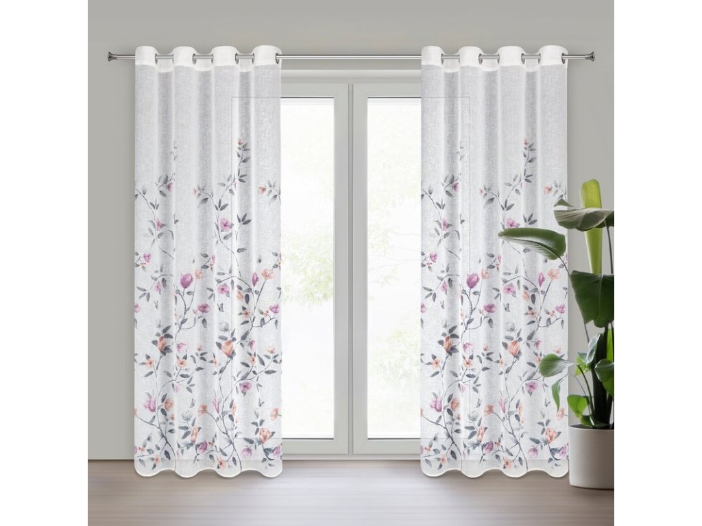 Dekorační etamínový závěs ANTEA s květinovým motivem 140x250cm