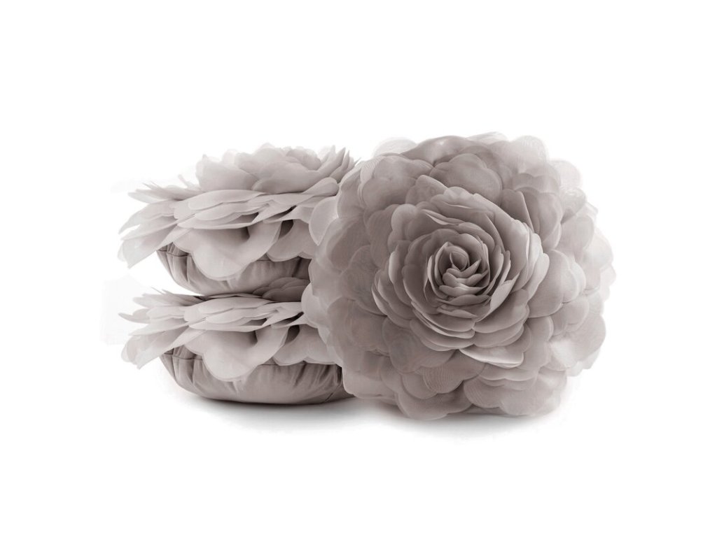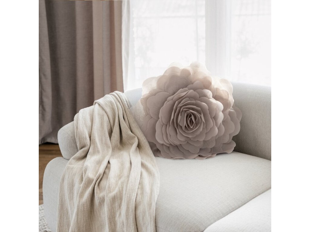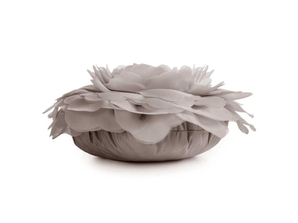 Unikátní dekorační polštář FLORES s nádherným trojrozměrným květem na vrchní straně, který je vyroben z jemné šifonové látky.