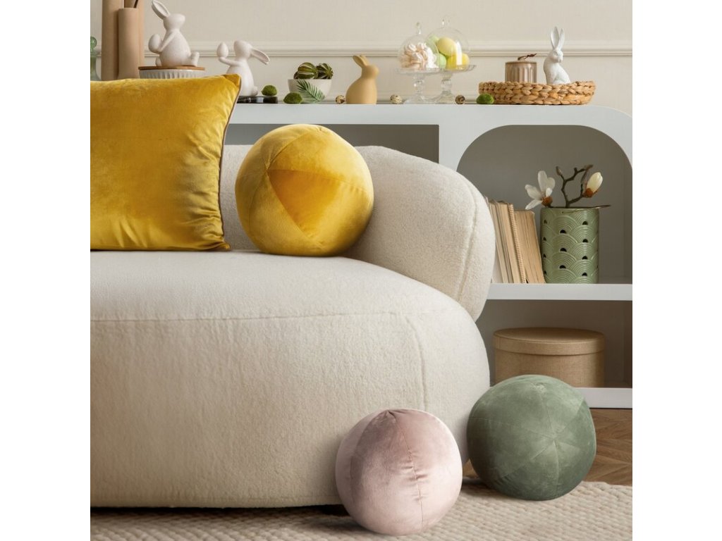 Dekorační koule GAJA může být použita jako dekorace na postel, pohovku nebo křeslo, čímž dodává interiéru eleganci a útulný charakter.