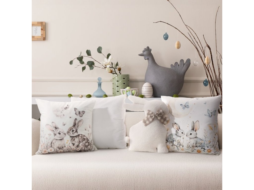 Tento dekorační polštář je perfektní volbou pro ty, kteří chtějí svůj domov ozdobit hravým, ale zároveň elegantním detailem 🐰🤍