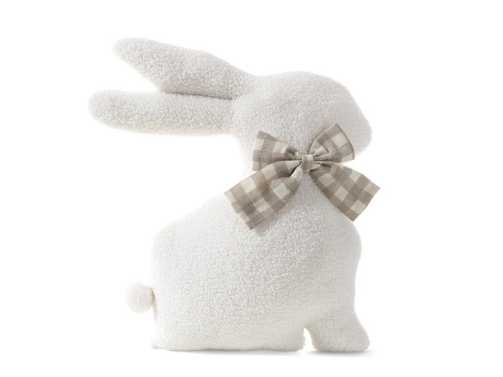 Roztomilý dekorační polštář ve tvaru zajíčka je ideálním doplňkem pro jarní a velikonoční dekorování.
