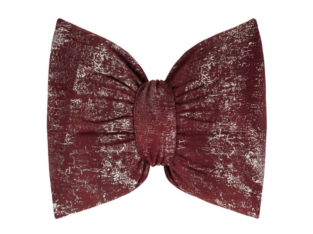 Dekorační sametový polštář ve tvaru mašle - bordó s lesklým efektem