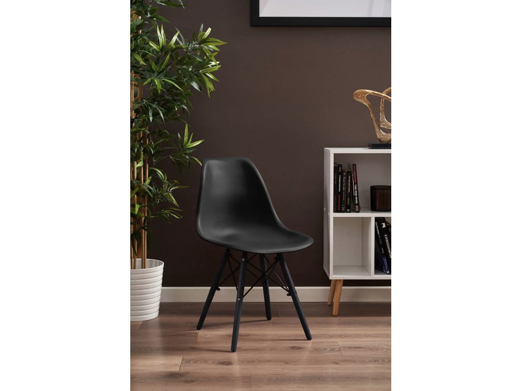 Designová jídelní židle ve skandinávském stylu - černá s černýma nohama