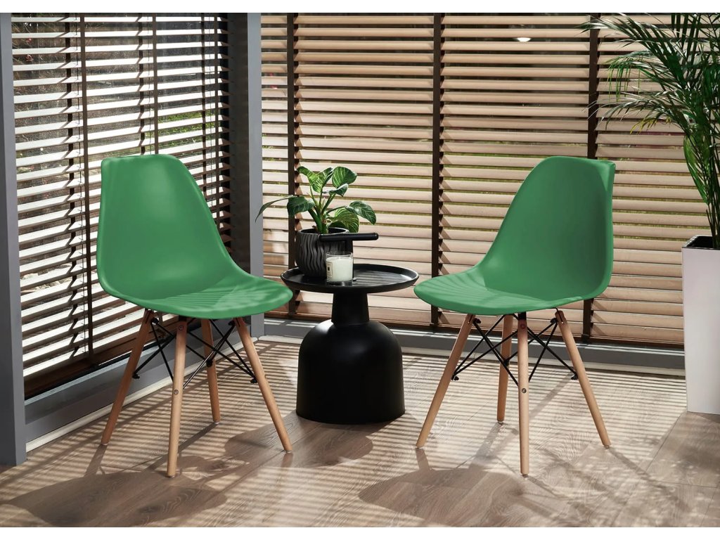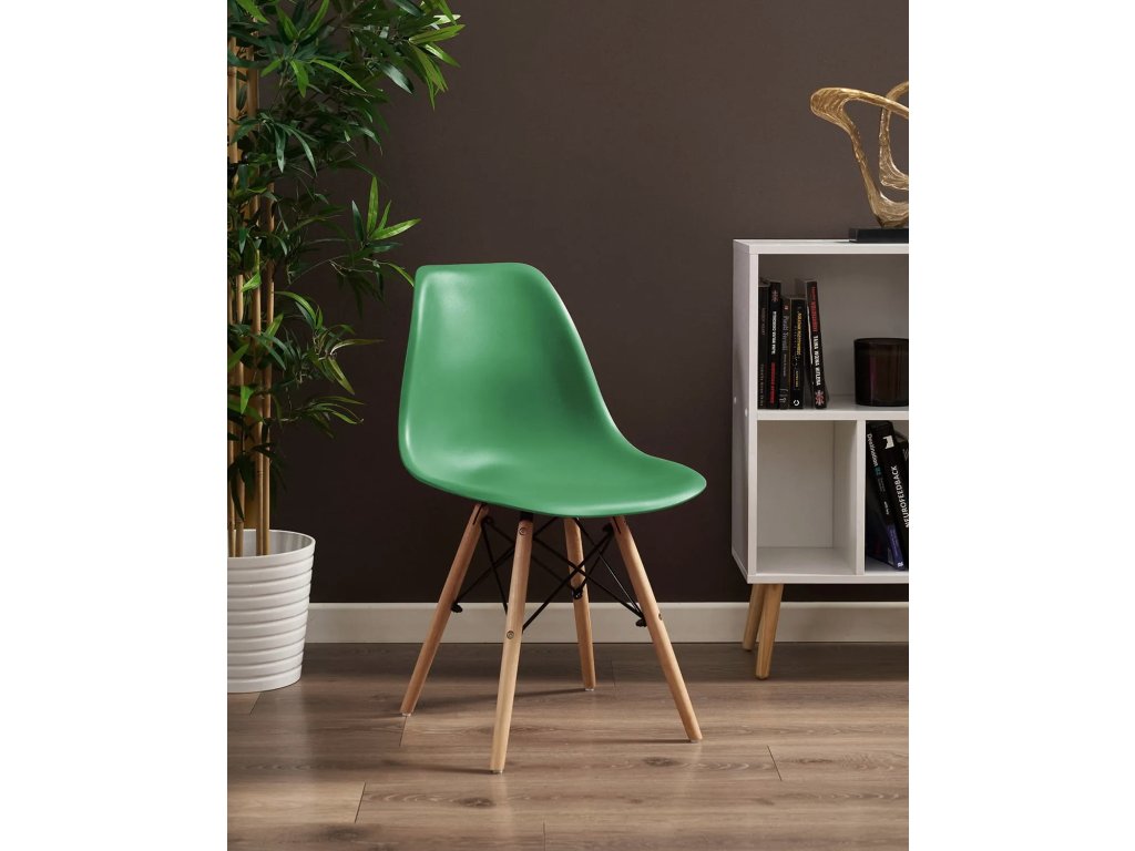 Ergonomicky tvarované sedátko z odolného polypropylenu je navrženo pro pohodlné každodenní sezení. Stabilitu zajišťují nohy z masivního bukového dřeva , které působí přirozeně a zároveň jsou pevné. Charakteristickým detailem jsou kontrastní spojky, které zpevňují konstrukci a zároveň slouží jako designový akcent.