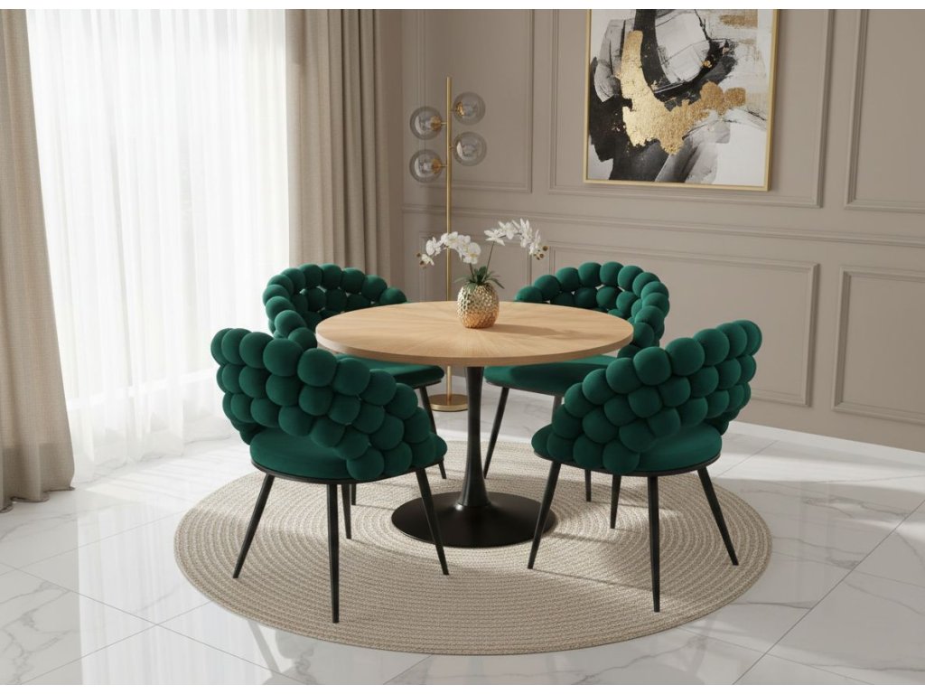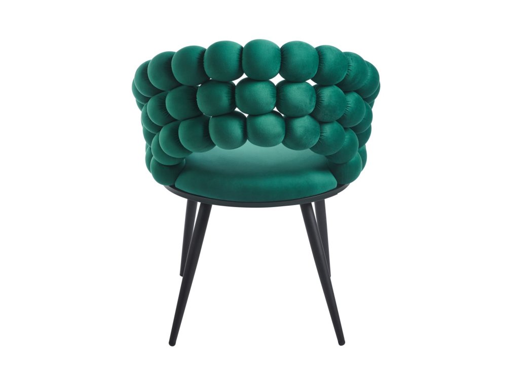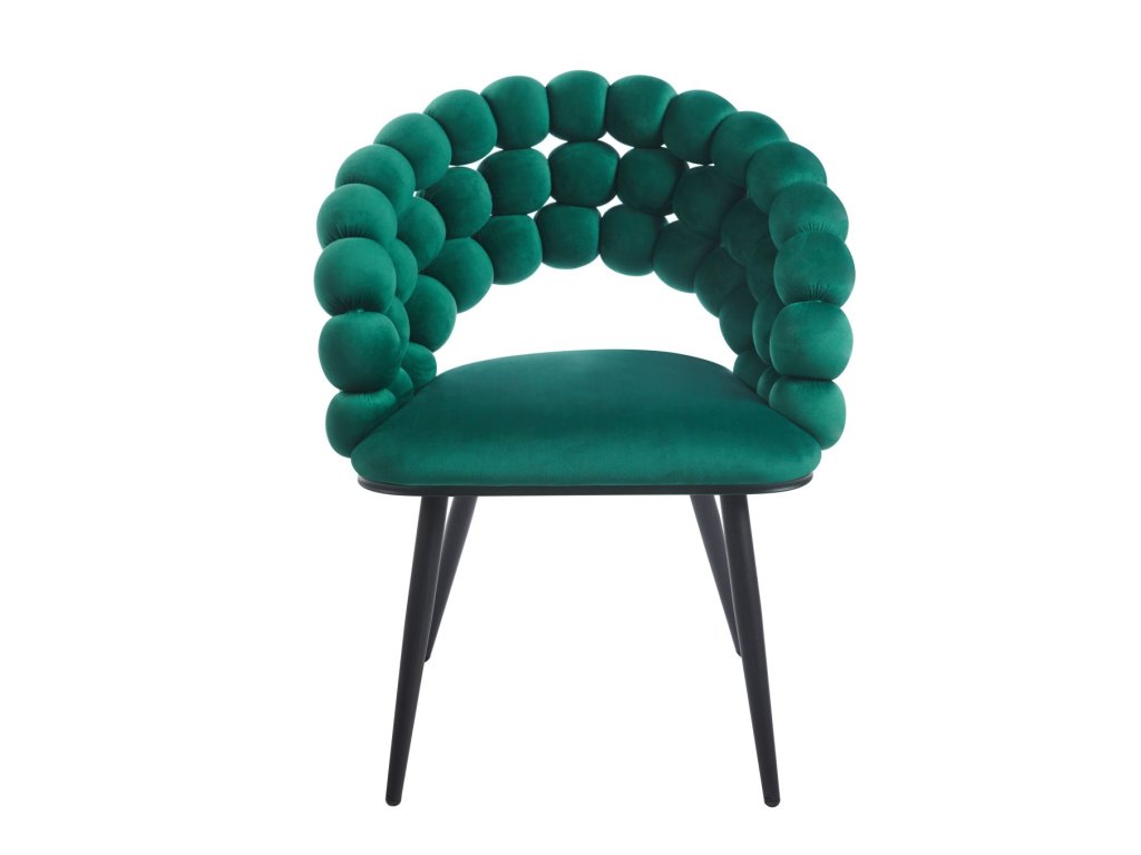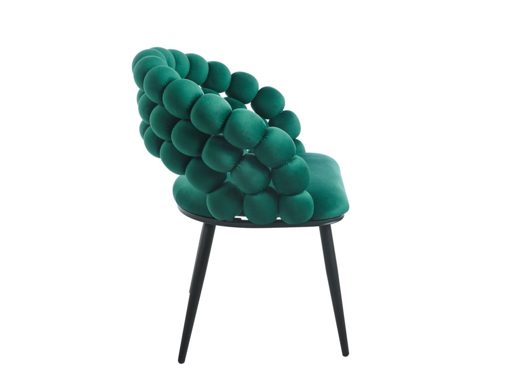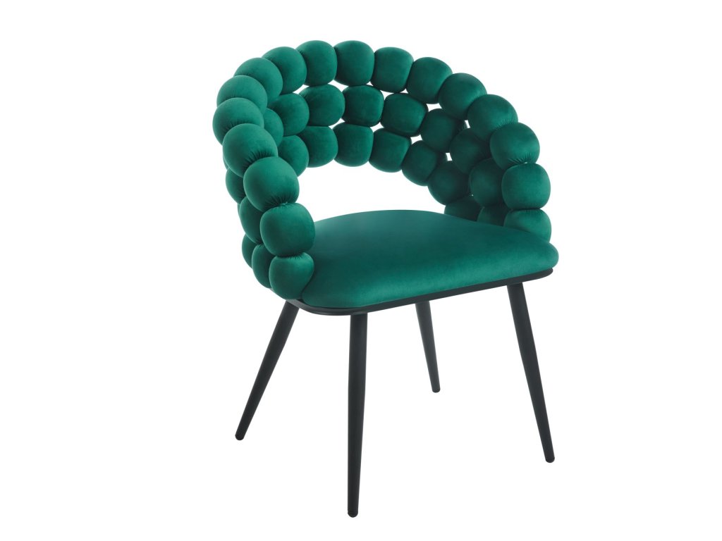 Designová židle RIVIERA v elegantní tmavě zelené barvě vnáší do interiéru pocit luxusu, noblesy a přírodní harmonie. Prémiové velurové čalounění je měkké, příjemné na dotek a zároveň odolné, díky čemuž si židle zachová svůj reprezentativní vzhled i při každodenním používání. Originálně tvarované opěradlo z plasticky formovaných segmentů vytváří výrazný designový prvek, který činí ze židle dominantní doplněk prostoru.
