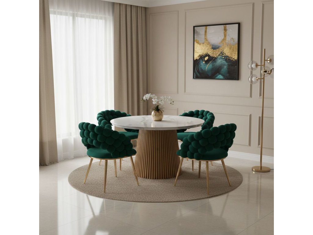 Tmavě zelený odstín se skvěle kombinuje s přírodními materiály, zlatými doplňky i neutrálními barvami. Židle je ideální do jídelny, obývacího pokoje, ložnice, pracovny, ale také do stylových kaváren, hotelových interiérů či kosmetických salonů.