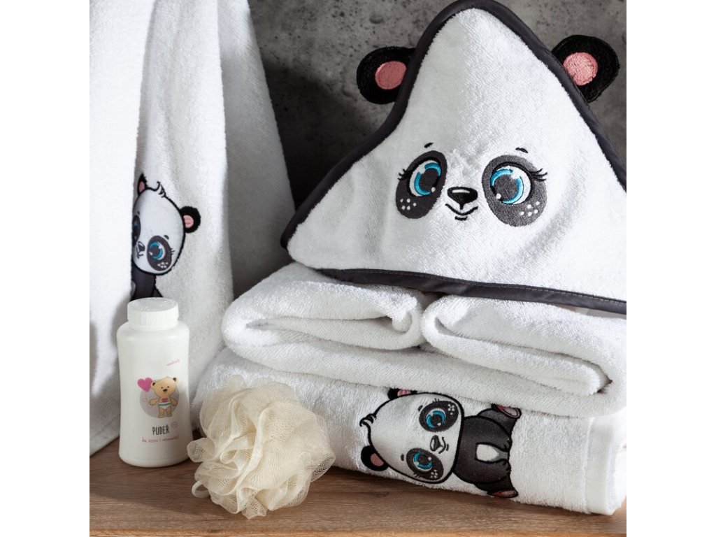 Dětská osuška s pandou 70 x 140 cm - bílá