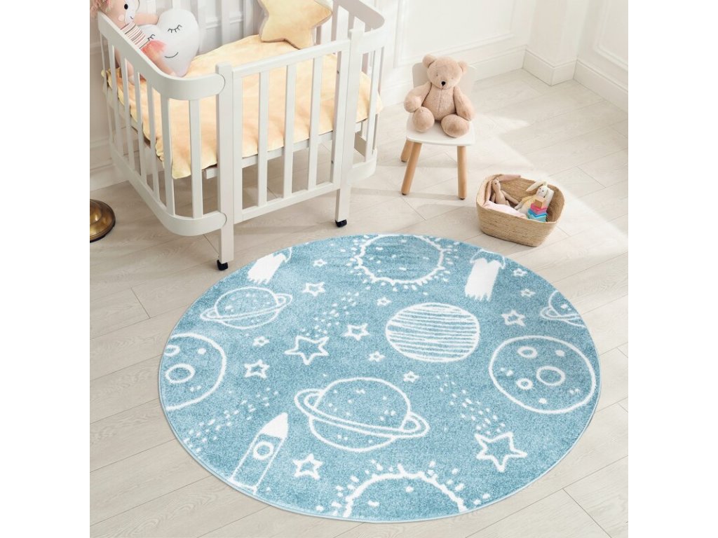 Dětský kulatý koberec ANIME vesmír - vzor 912 - modrý