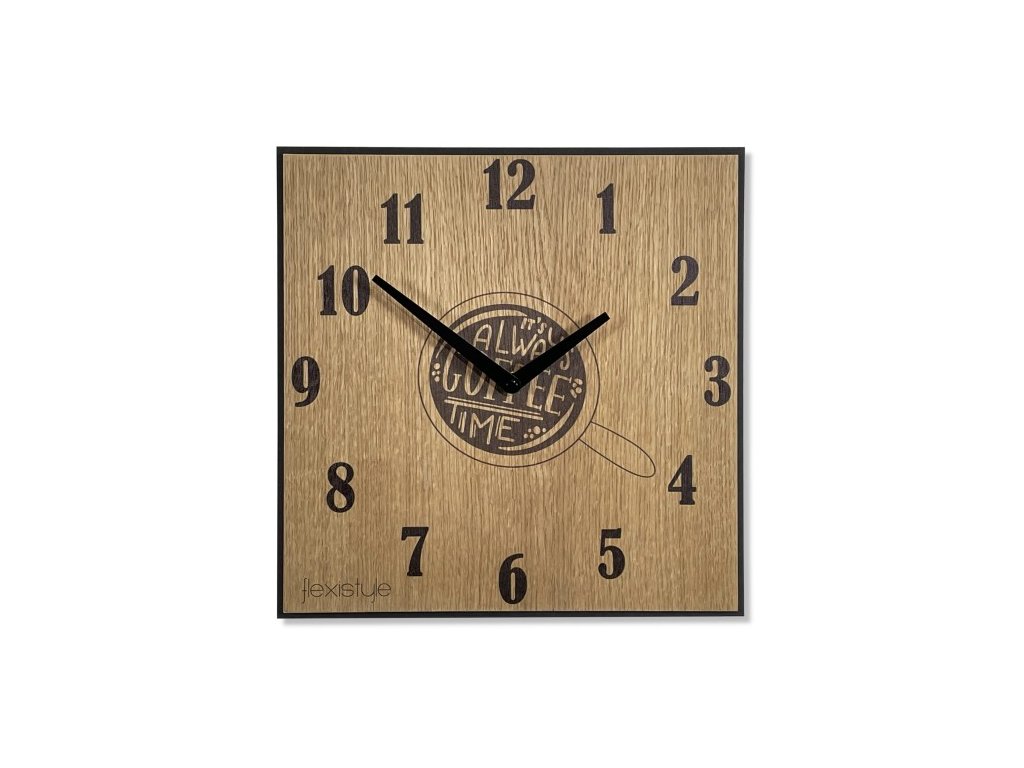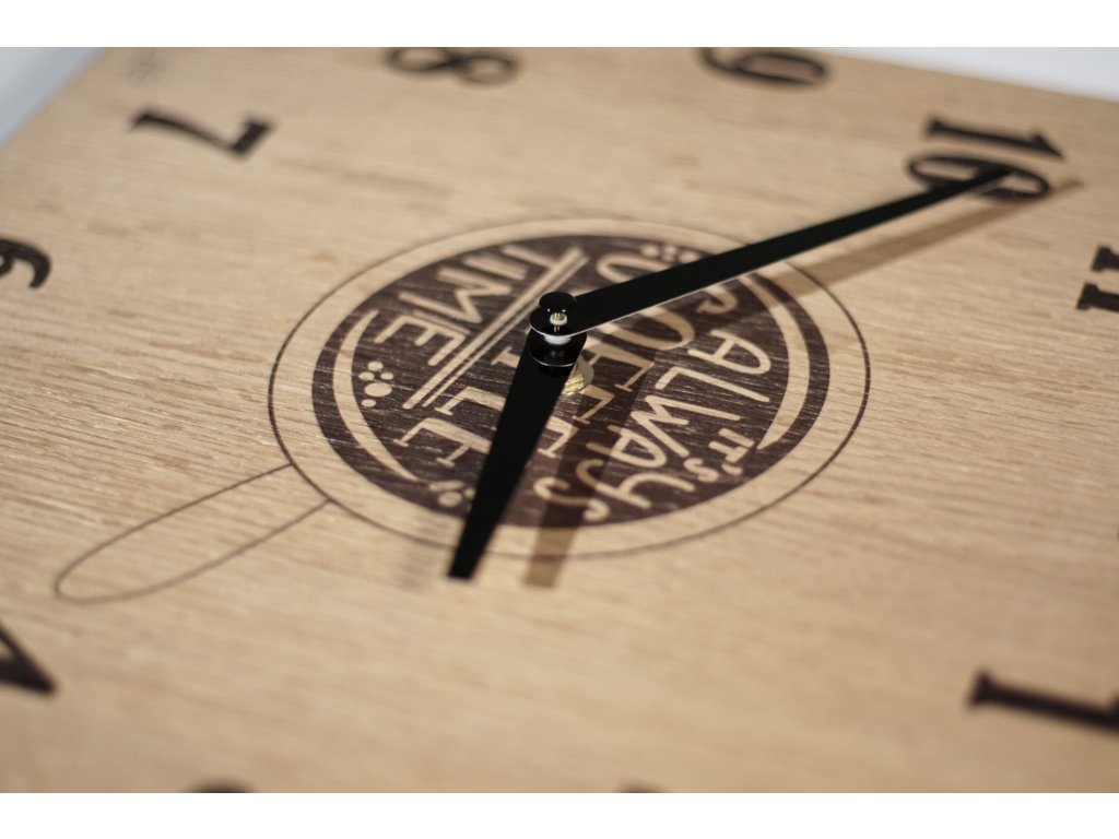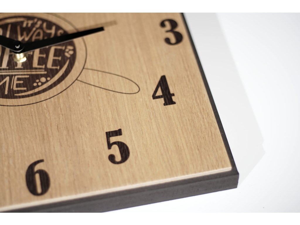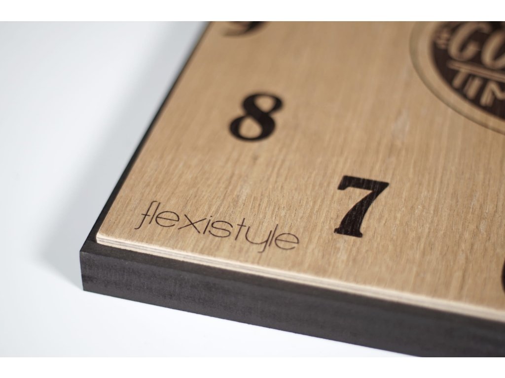 Samotné čelo hodin je vyrobeno z přírodní dubové dýhy. Spodní vrstva je MDF barvená v černé antracitové barvě.