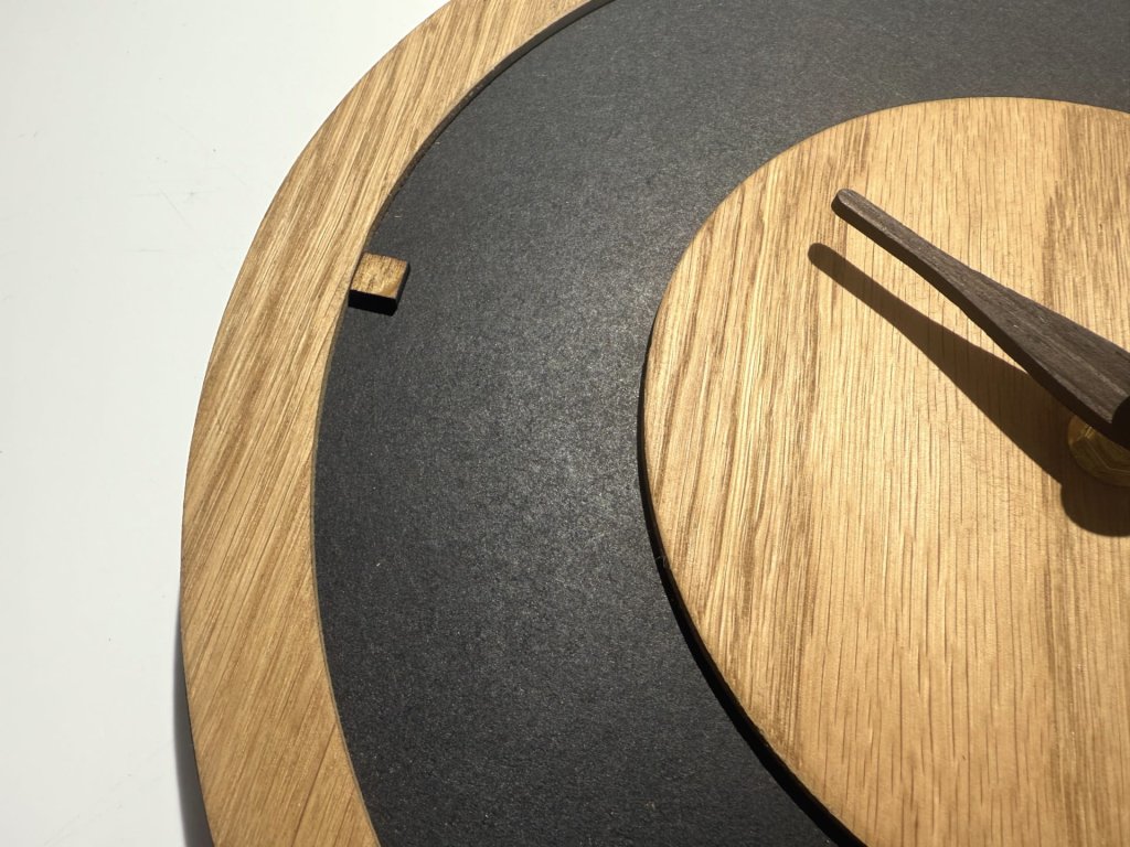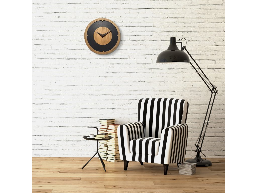 Ciferník je vyroben z dubové dýhy a jemné dřevěné ručičky podtrhují elegantní, minimalistický charakter. K dispozici ve dvou barevných provedeních: