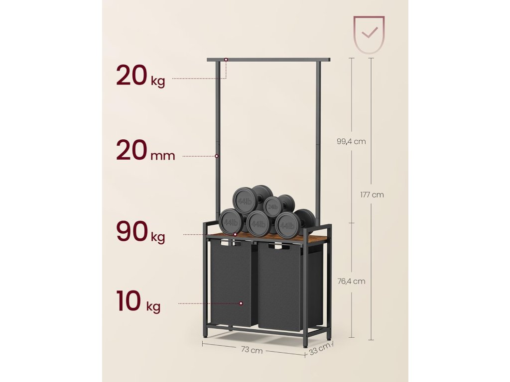 Košíčky lze volně vytáhnout pro pohodlný pohyb. Pokud koš použijete jako kontejner na hračky, umožní vám ovládat plyšová zvířátka vašeho dítěte. Do koše se určitě vejdou i čisté deky či ručníky. Košíky se zapínají na suchý zip. Nastavitelné nožičky vám pomohou správně vyrovnat nábytek i na nerovné podlaze. Kombinace koše na prádlo s místem pro skládání oblečení a věšákem osloví každého, kdo bude mít tento kus nábytku ve své prádelně. Čerstvě vyžehlené oblečení nyní počká, než si ho oblékneme.