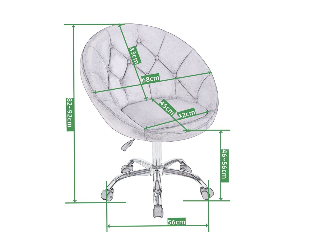 Židle nabízí komfortní sezení a praktické využití u toaletního stolku, v kanceláři, kosmetickém salonu či ve studentském pokoji. Stabilní kovová konstrukce se zlatou povrchovou úpravou dodává luxusní vzhled a zajišťuje odolnost. Díky nastavitelné výšce a otočnému mechanismu je židle nejen krásná, ale také maximálně funkční.