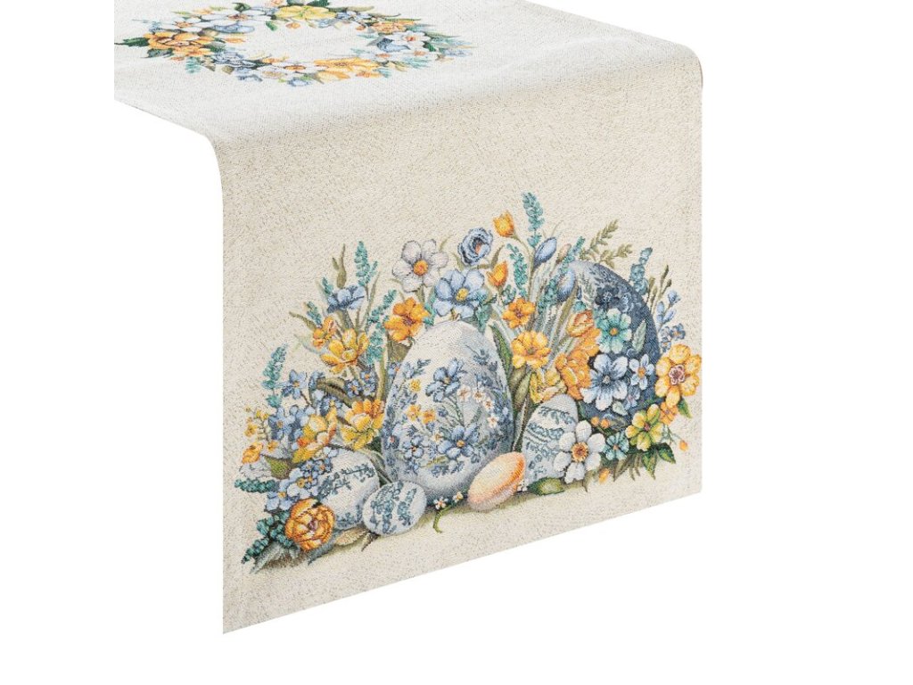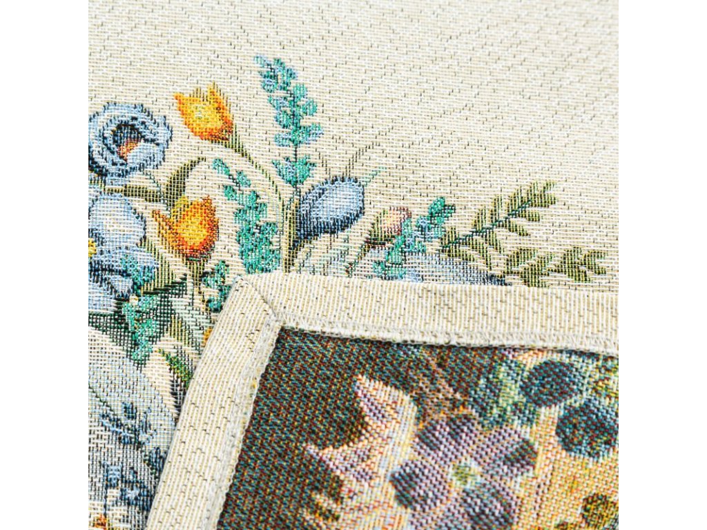 Jemný a elegantní gobelínový běhoun na stůl s květinovým motivem vnese do interiéru pocit jara, svěžesti a přírodní harmonie.