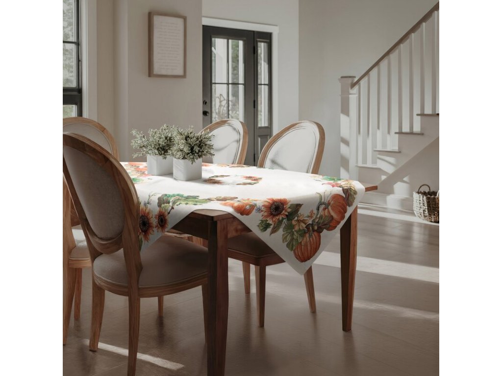 Hrubší žakárová látka zaručuje krásný dekorativní efekt a vzor získaný technikou tkaní činí ubrus krásným v rustikálním i romantickém interiéru.