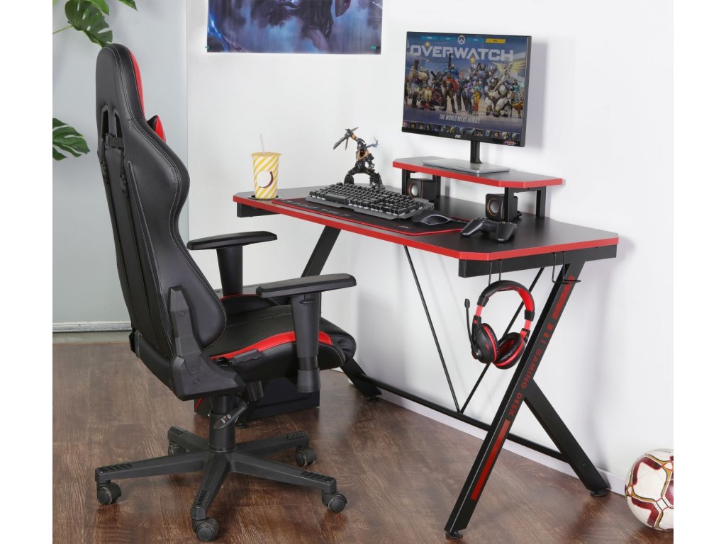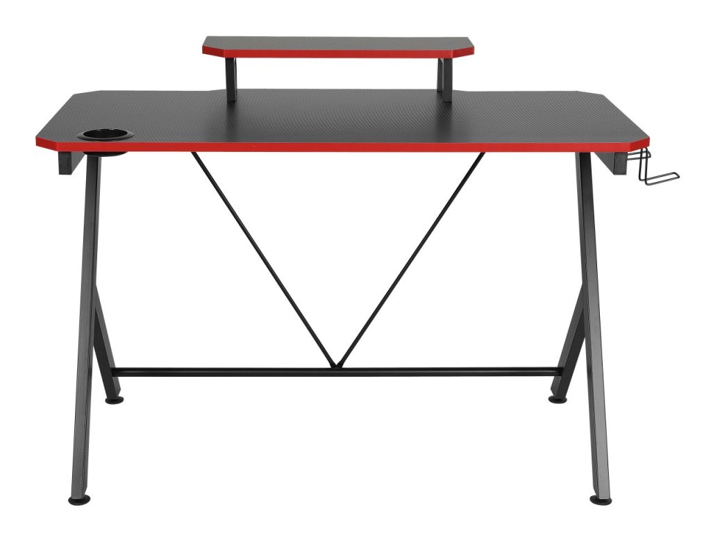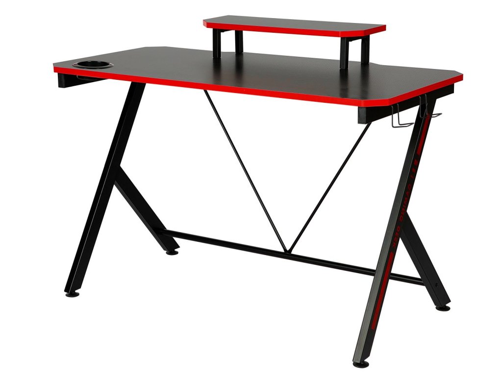 Stůl s výškou 76 cm a nástavcem dosahujícím 88 cm poskytuje dostatek místa pro monitor, klávesnici, myš a další herní příslušenství. Praktické doplňky jako plastikový držák na nápoje a kovové háčky na sluchátka učiní z vašeho gaming prostoru dokonale organizované místo.
