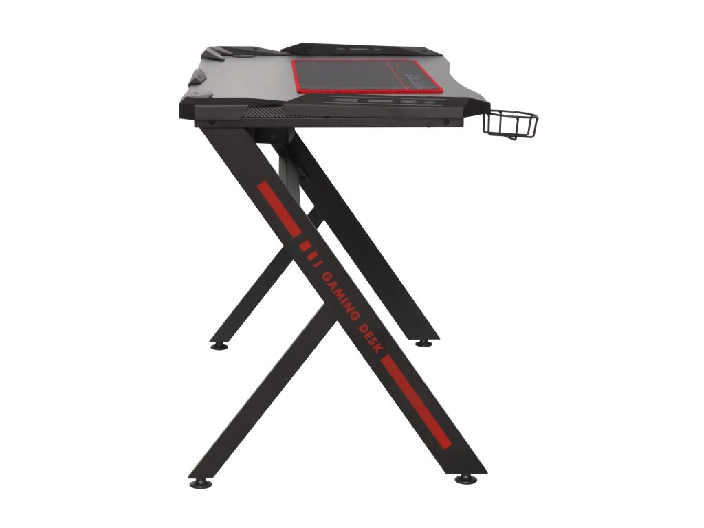 Rozměr stolu 120x60 cm o výšce 76 cm poskytuje dostatek prostoru pro práci i hraní. Integrované LED podsvícení ovládané dálkovým ovladačem vytváří atmosférické osvětlení herního prostoru. Praktické prvky jako kovový držák na šálek, háčky na sluchátka a vestavěný USB hub dělají z tohoto křesla kompletní pracovní centrum.