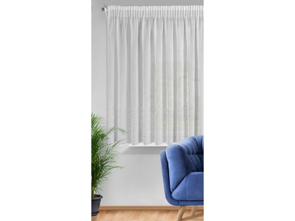 Záclona je vyrobena z jemného etaminu a krásně se přikrývá na okno a vytváří jemný a příjemný efekt. Horní část závěsu je zdobena pásem lesklých krystalů, které jsou uspořádány v geometrickém vzoru, což dodává jeho jedinečnému šarmu a stylu.