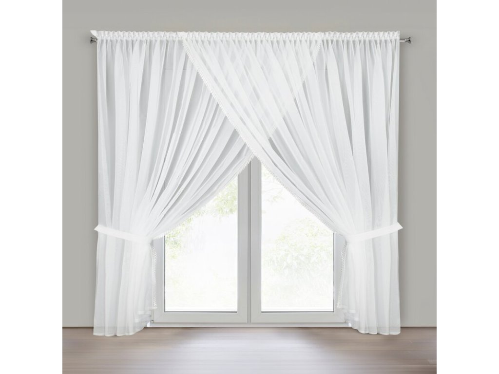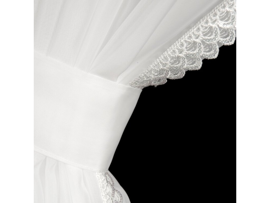 Na spodních a bočních okrajích je záclona zakončena jemnou krajkou , která jí dodává dekorativní a romantický charakter. Tento detail činí ze záclony elegantní doplněk, který se hodí do klasických, moderních i vintage interiérů .