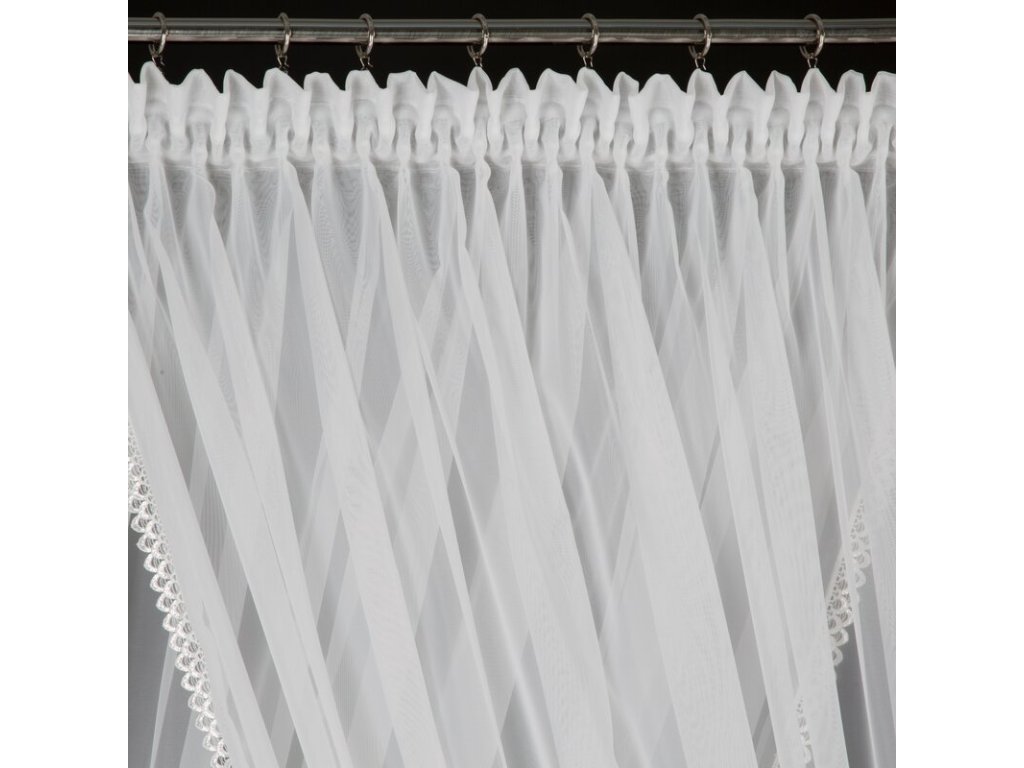 Hotová voálová záclona s krajkovým lemem CAROLINE na řasící pásce 400x250 cm