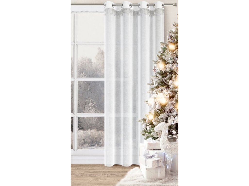 Dopřejte svému domovu vánoční šarm a zimní eleganci s touto hotovou bílou záclonou se stříbrným lemováním . Vyrobená je z jemného, průsvitného etaminu , který nádherně rozptyluje světlo a vytváří útulnou, zářivou atmosféru během celého svátečního období.