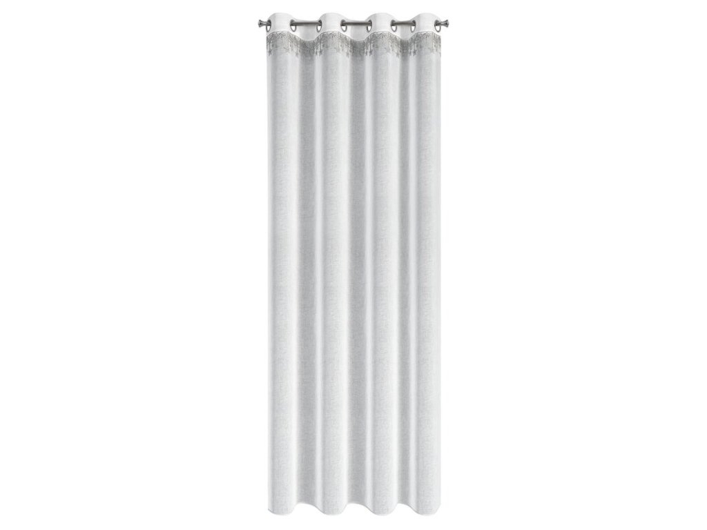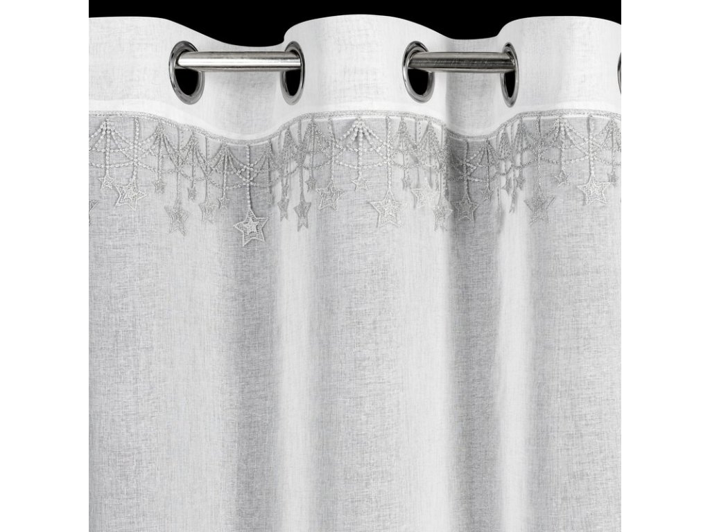 Záclona je hotová na zavěšení – v horní části je vybavena kovovými očky , které umožňují snadné a rychlé uchycení na záclonovou tyč. Látka se přirozeně zavěsí do jemných, rovnoměrných záhybů a vytvoří elegantní a sváteční vzhled okna .