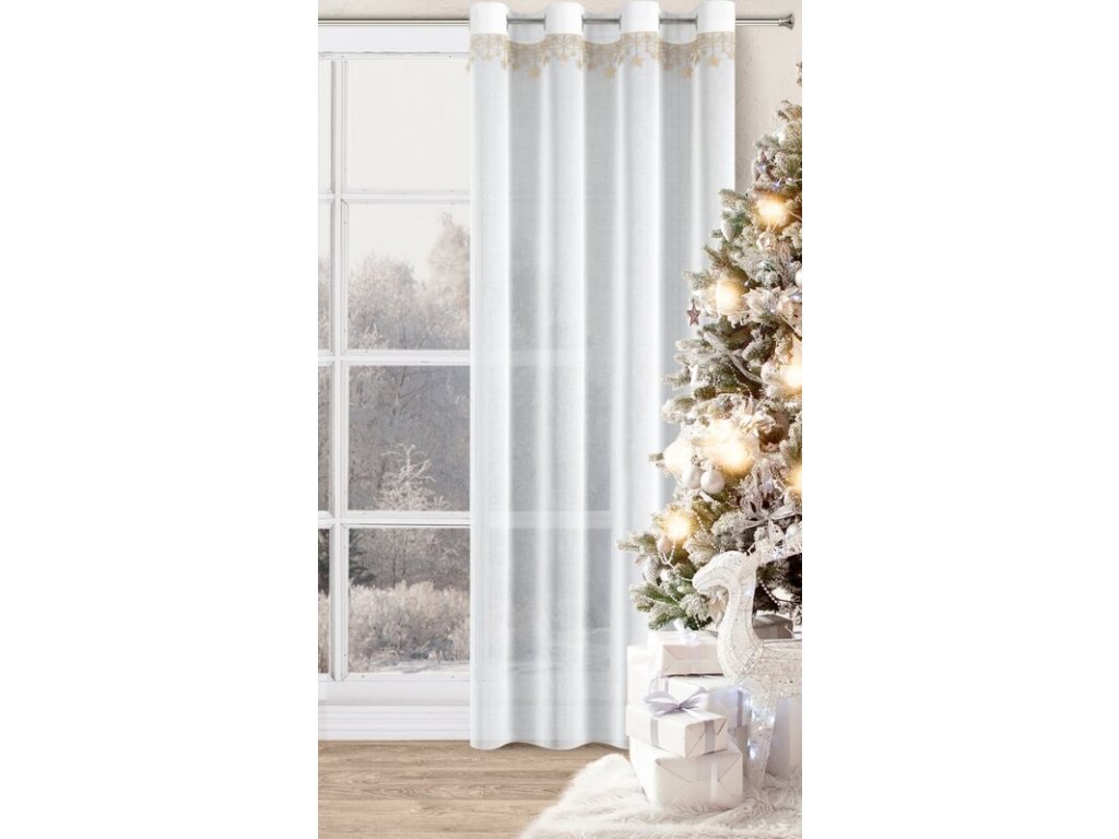 Vneste do svého domova vánoční atmosféru, teplo a eleganci s touto hotovou bílou záclonou se zlatým lemováním . Vyrobena je z kvalitního, lehkého etaminu , který jemně propouští světlo, díky čemuž interiér působí svěže, prostorně a útulně .