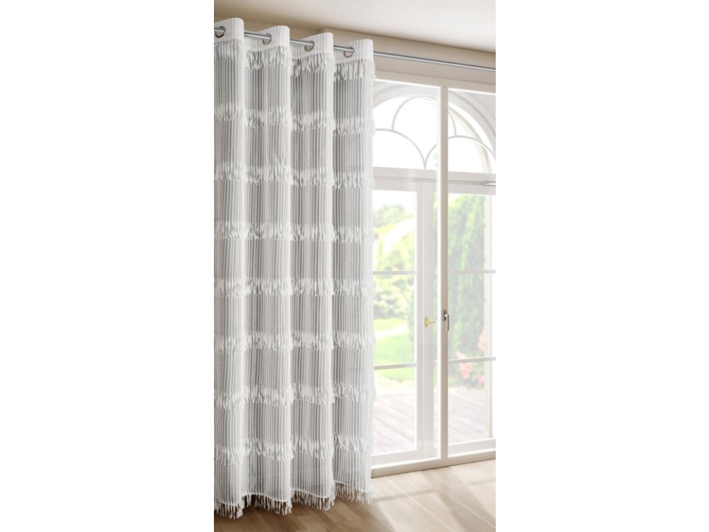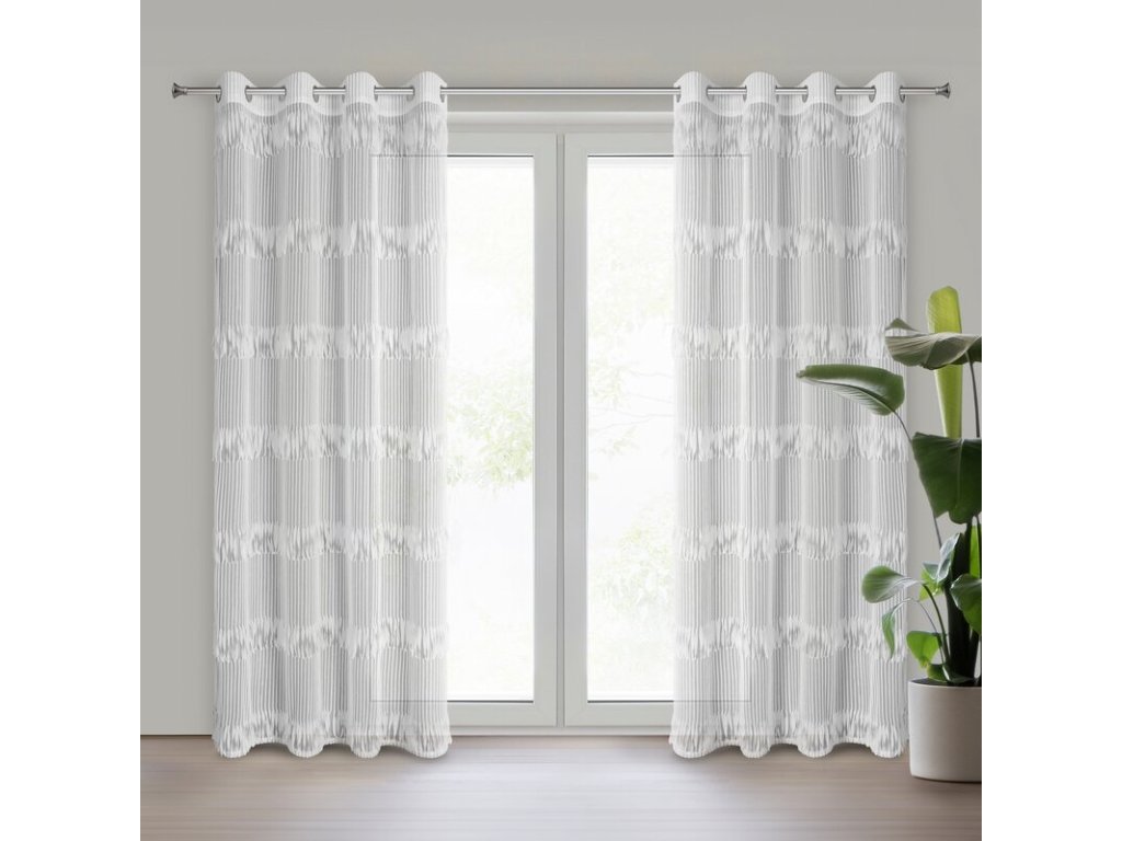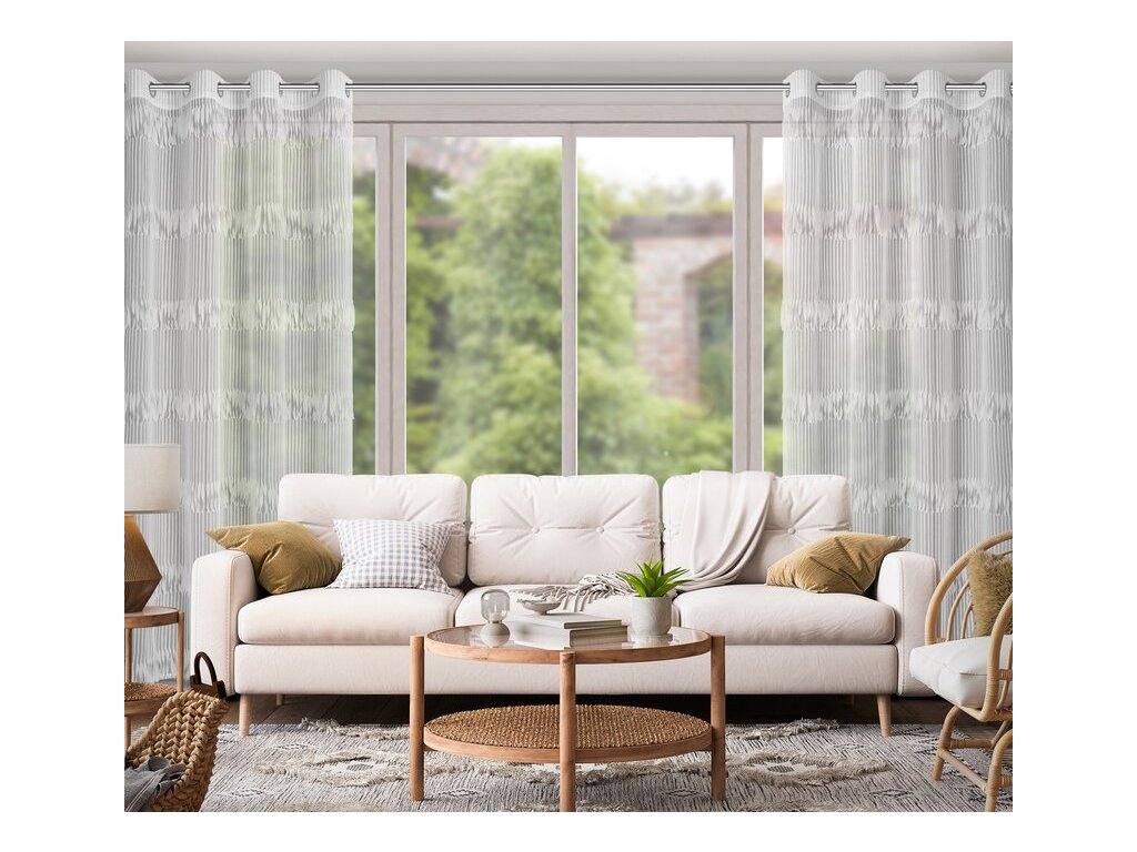 Záclona je provedena na dekoračních kolečkách - průchodkách, které usnadňují přemisťování záclony po záclonové tyči.