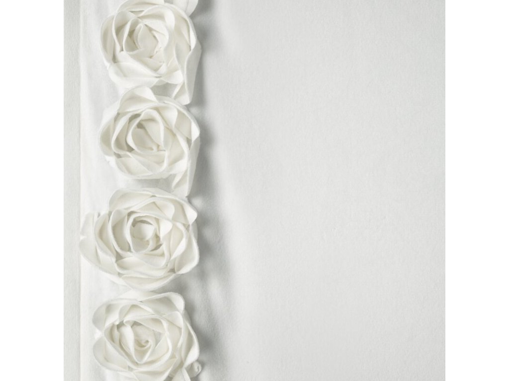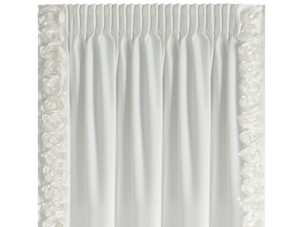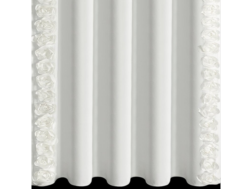 Závěs je vyroben z vysoce kvalitního 100% polyesteru , který je měkký, odolný a příjemný na dotek. Po stranách jej zdobí vertikální pruhy 3D růží z látky , které mu dodávají jedinečný, dekorativní vzhled a vytvářejí z něj designový doplněk každého prostoru.