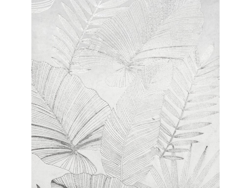 Sametový materiál působí luxusně a díky lesklému potisku s decentním vzorem dodává prostoru svěží a moderní vzhled. Bílý odstín opticky zvětšuje místnost, propouští dostatek světla a zároveň vytváří pocit harmonie a čistoty.