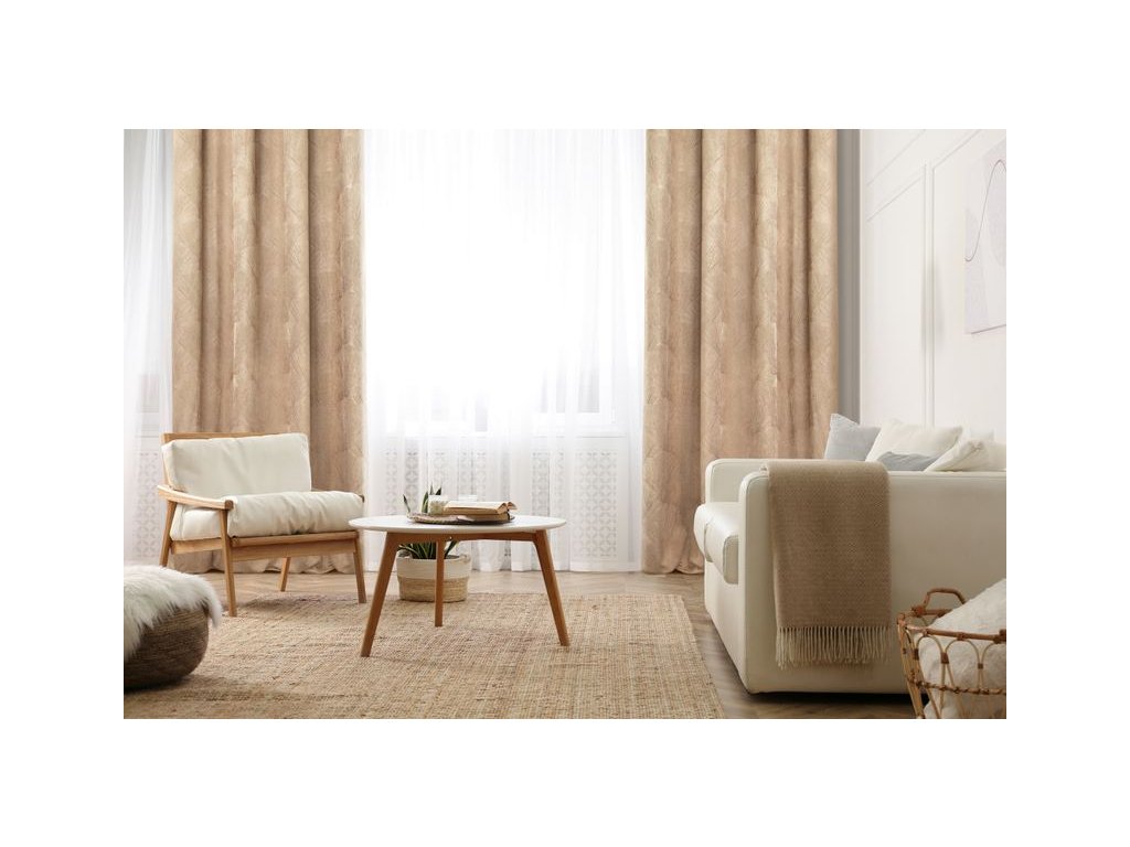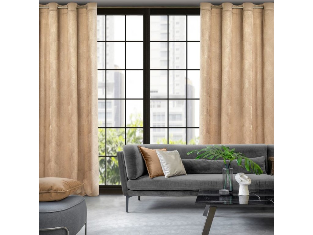 Vneste do svého interiéru luxus a sofistikovaný styl se závěsem z prestižní kolekce PIERRE CARDIN . Elegantní motiv listů ginka v růžovozlatém fóliovém potisku jemně odráží světlo a vytváří okouzlující efekt, který okamžitě upoutá pozornost.