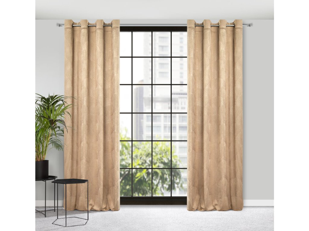 Závěs je vyroben z kvalitní sametové tkaniny , která působí hebce a ušlechtile. Po zavěšení na záclonovou tyč vytváří měkké, přirozené vlny, které dodají prostoru hloubku a eleganci. Kromě estetického působení poskytuje také praktické výhody – efektivně zastíní až 80 % světla , čímž chrání interiér před osluněním a zajišťuje příjemnou atmosféru během dne.