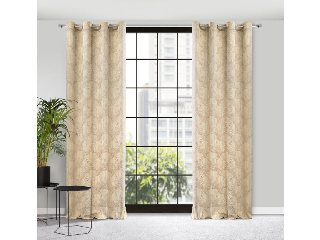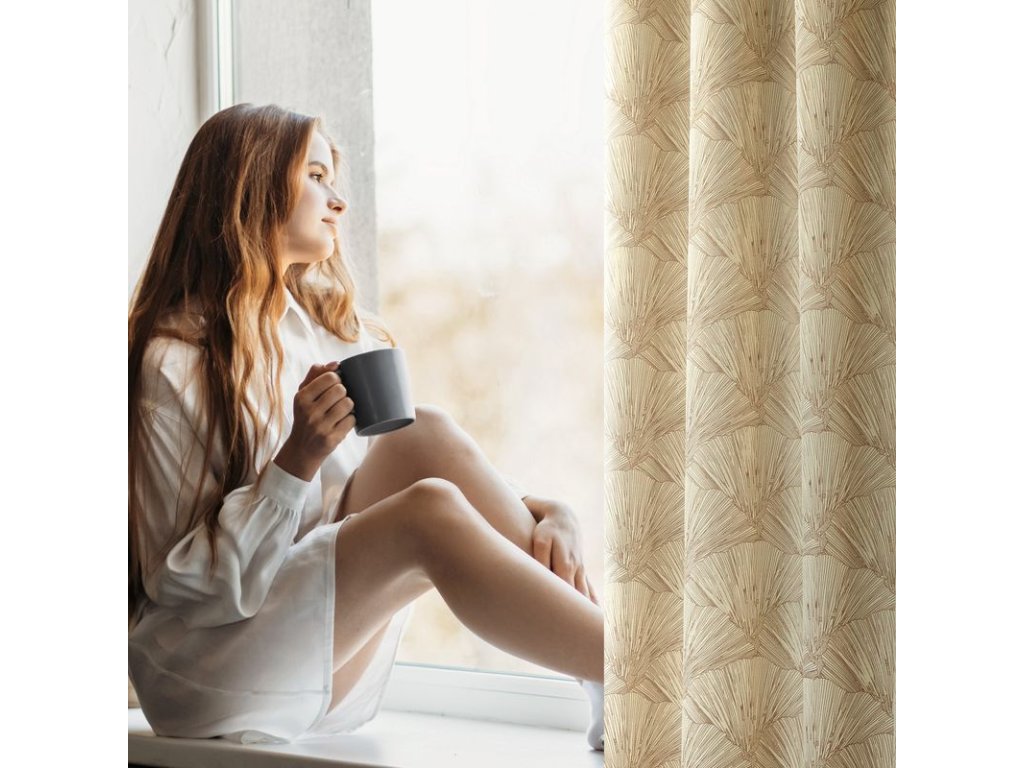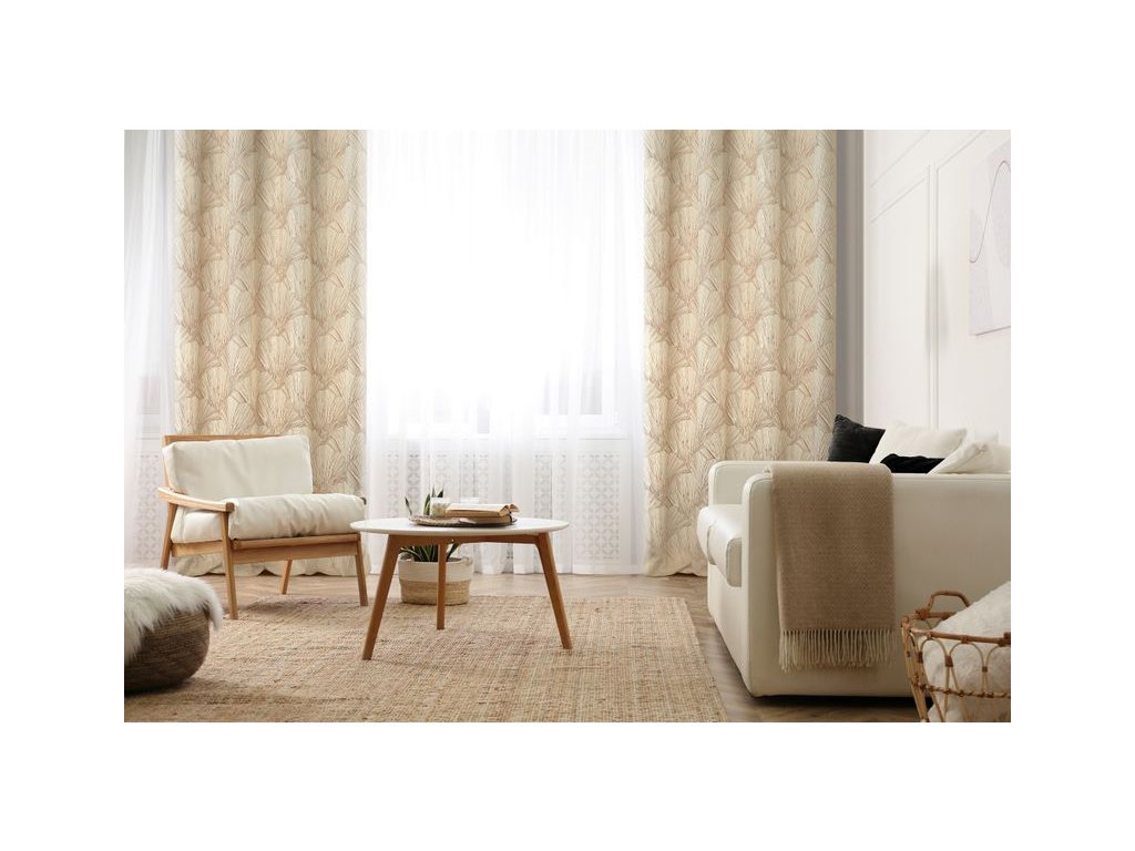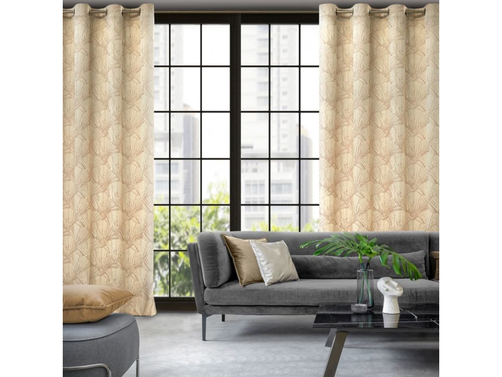 Vneste do svého interiéru luxus a sofistikovaný styl se závěsem z prestižní kolekce PIERRE CARDIN . Elegantní motiv listů ginka v růžovozlatém fóliovém potisku jemně odráží světlo a vytváří okouzlující efekt, který okamžitě upoutá pozornost.