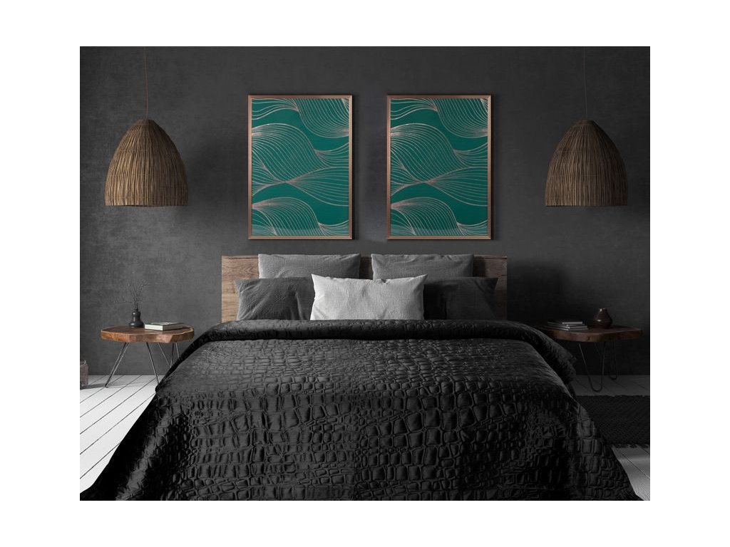 Elegantní, hrubý, masitý, sametový přehoz na postel s lesklým potiskem.