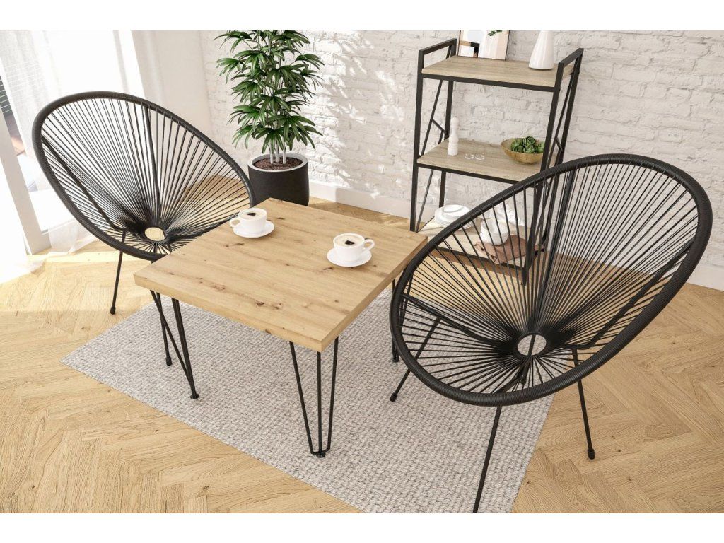 Představujeme vám stylový kávový stolek o rozměrech 67x67 cm, který perfektně zkombinuje přírodní vzhled dřeva s moderním designem. Deska v dekoru dub artisan dodává interiéru teplou a útulnou atmosféru, zatímco černé kovové nohy vytvářejí elegantní kontrast a dodávají prostoru moderní nádech.