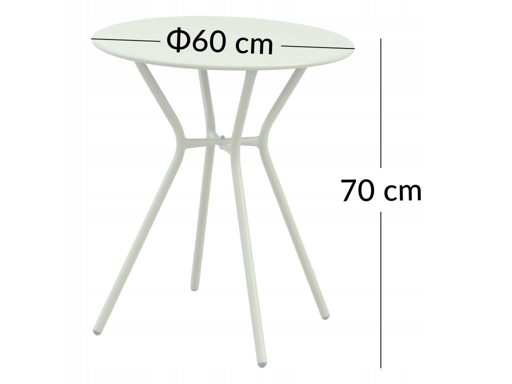 Čtyřnohá konstrukce z práškově lakovaných ocelových profilů poskytuje stabilní oporu a zároveň působí vzdušně a designově. Kulatý tvar stolové desky o průměru 60 cm nabízí dostatek místa pro kávu, nápoje či drobné dekorace, přičemž výška 70 cm odpovídá standardní výšce jídelních a kavárenských stolů. Stolek je vhodný pro použití venku i uvnitř, což z něj činí skutečně všestranný kus nábytku.