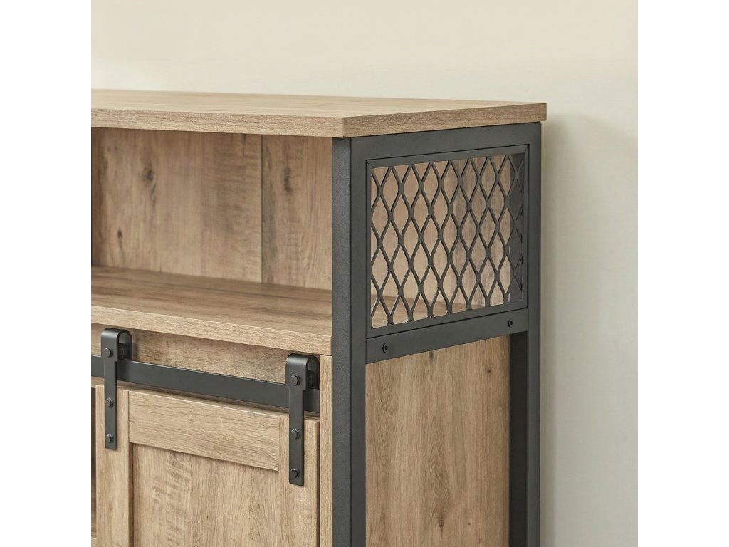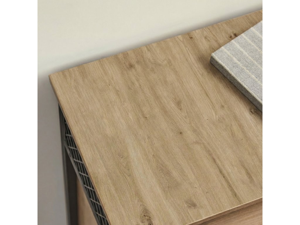 Moderní komoda v loftovém stylu s posuvnými dveřmi je ideálním řešením pro interiéry, které spojují industriální charakter s funkčností. Kombinace dekoru Dub Artisan a černých kovových prvků vytváří nadčasový vzhled, který skvěle zapadne do obývacího pokoje, předsíně, pracovny i ložnice.