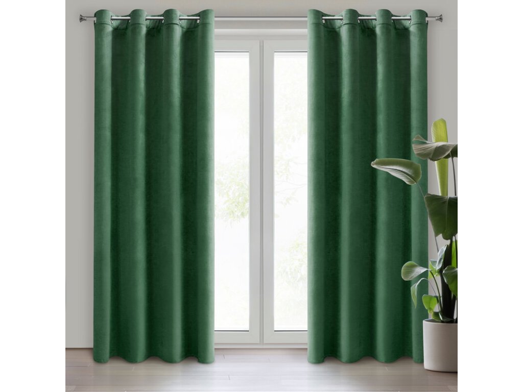 Vneste do svého domova hloubku a eleganci s luxusním kompletem hotových velvetových závěsů v tmavě zelené barvě . Jemný sametový materiál působí teplo a útulně, přičemž krásně splývá a dodává interiéru nádech sofistikovaného luxusu.