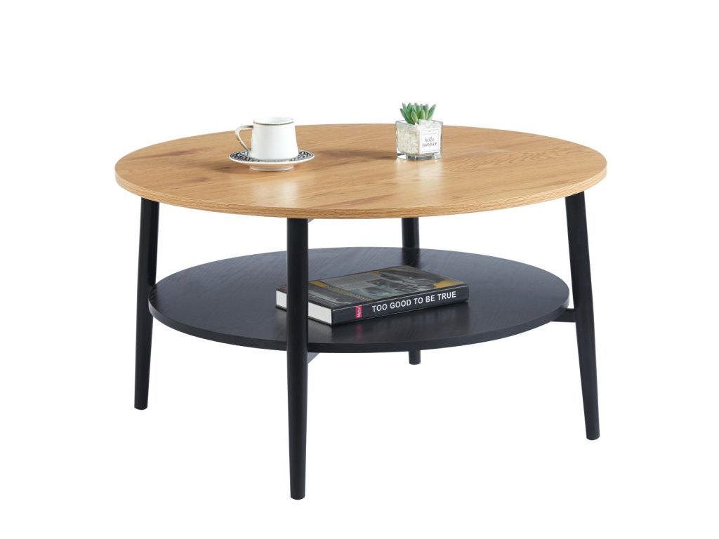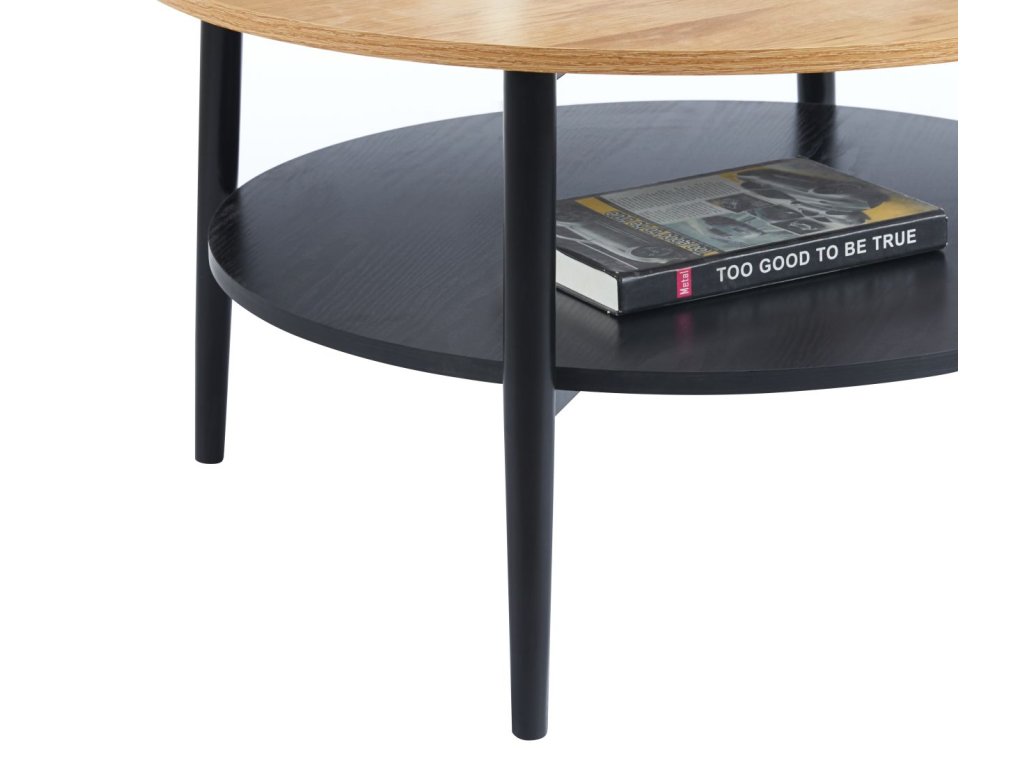 Konferenční stolek NORDIC DUO Ø80 je stylovým spojením přírodního vzhledu dřeva a moderní černé elegance. Kulatý horní stolek v dekoru dub natural vnáší do interiéru teplo a přirozenost, zatímco spodní černá police a kovová konstrukce dodávají celku moderní, mírně industriální charakter.