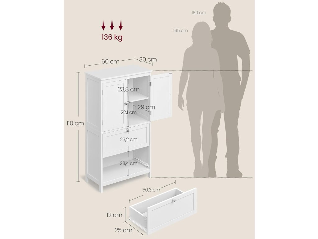 Maximální nosnost skříňky: 136 kg