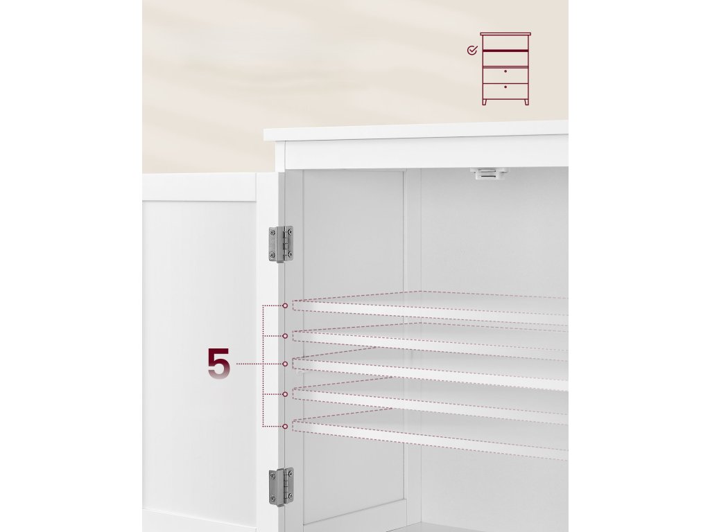 Výšku vnitřní police si můžete nastavit až v 5 úrovních , takže úložný prostor přizpůsobíte přesně svým potřebám.