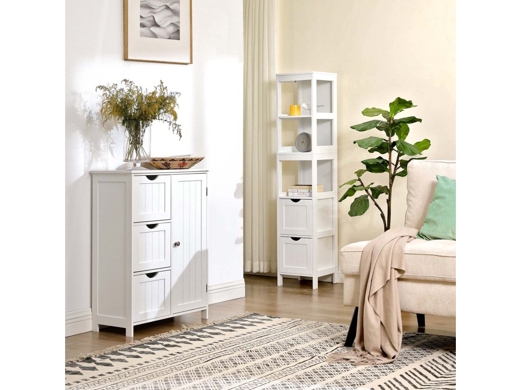 Moderní úzká koupelnová skříňka typu sloupek v bílé barvě je ideálním řešením pro efektivní využití prostoru i v menších místnostech. Díky svému štíhlému tvaru se skvěle hodí do koupelny, prádelny, kuchyně, ložnice či předsíně, kde poskytne praktický úložný prostor bez zbytečného zahlcení interiéru.