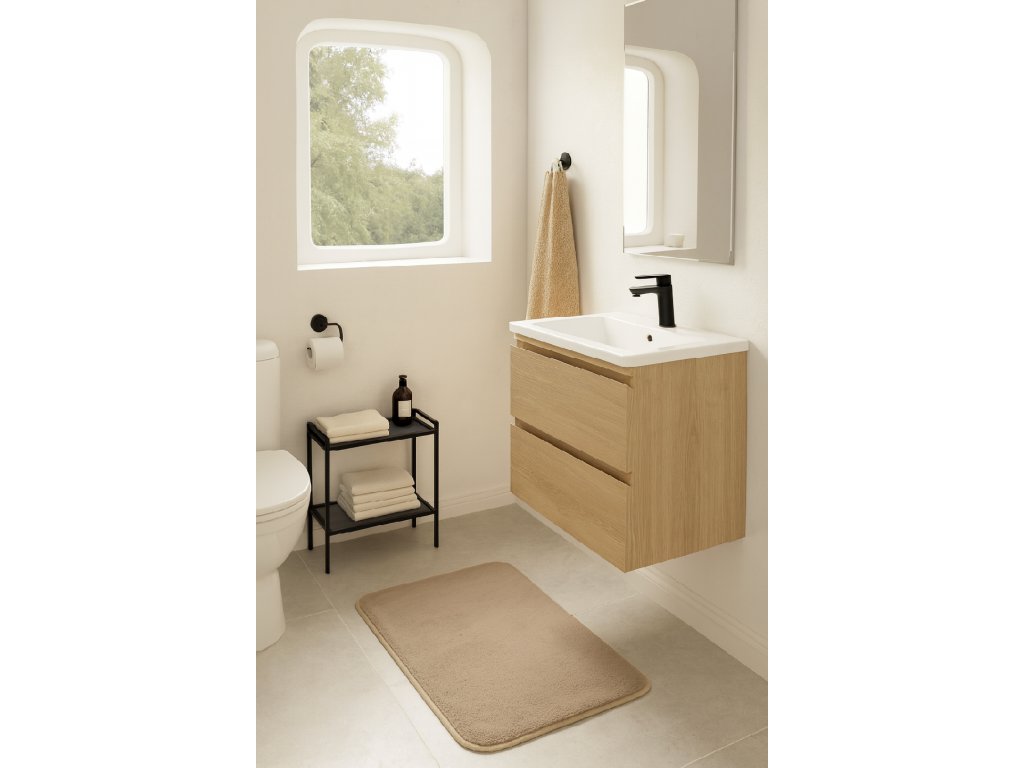 Praktický rozměr 50 x 70 cm zaručuje, že se hodí před vanu, sprchový kout i umyvadlo.