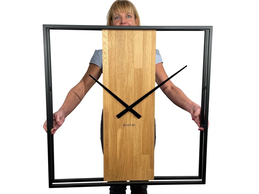Kovové hodiny s dubovým dřevem LOFT SQUARE 80cm