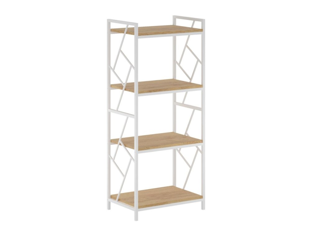 Moderní 4-patrový regál R2-FX spojuje eleganci přírodního dřeva s praktičností kovové konstrukce. Police v dekoru přírodního dubu vytváří teplý a přirozený vzhled, zatímco bílá kovová konstrukce dodává celému regálu moderní a vzdušný charakter. Toto spojení materiálů je ideální pro současné interiéry, kde se potýká funkčnost s designem.