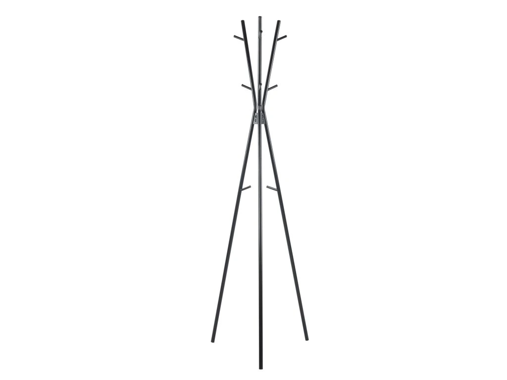 Moderní kovový věšák ve stylové černé barvě je praktickým a estetickým řešením pro pořádání oděvu v každé domácnosti. Vyrobený z kvalitního kovu s práškovým lakováním zajišťuje dlouhou životnost a odolnost vůči opotřebení. Elegantní design se hodí do různých stylů interiéru.